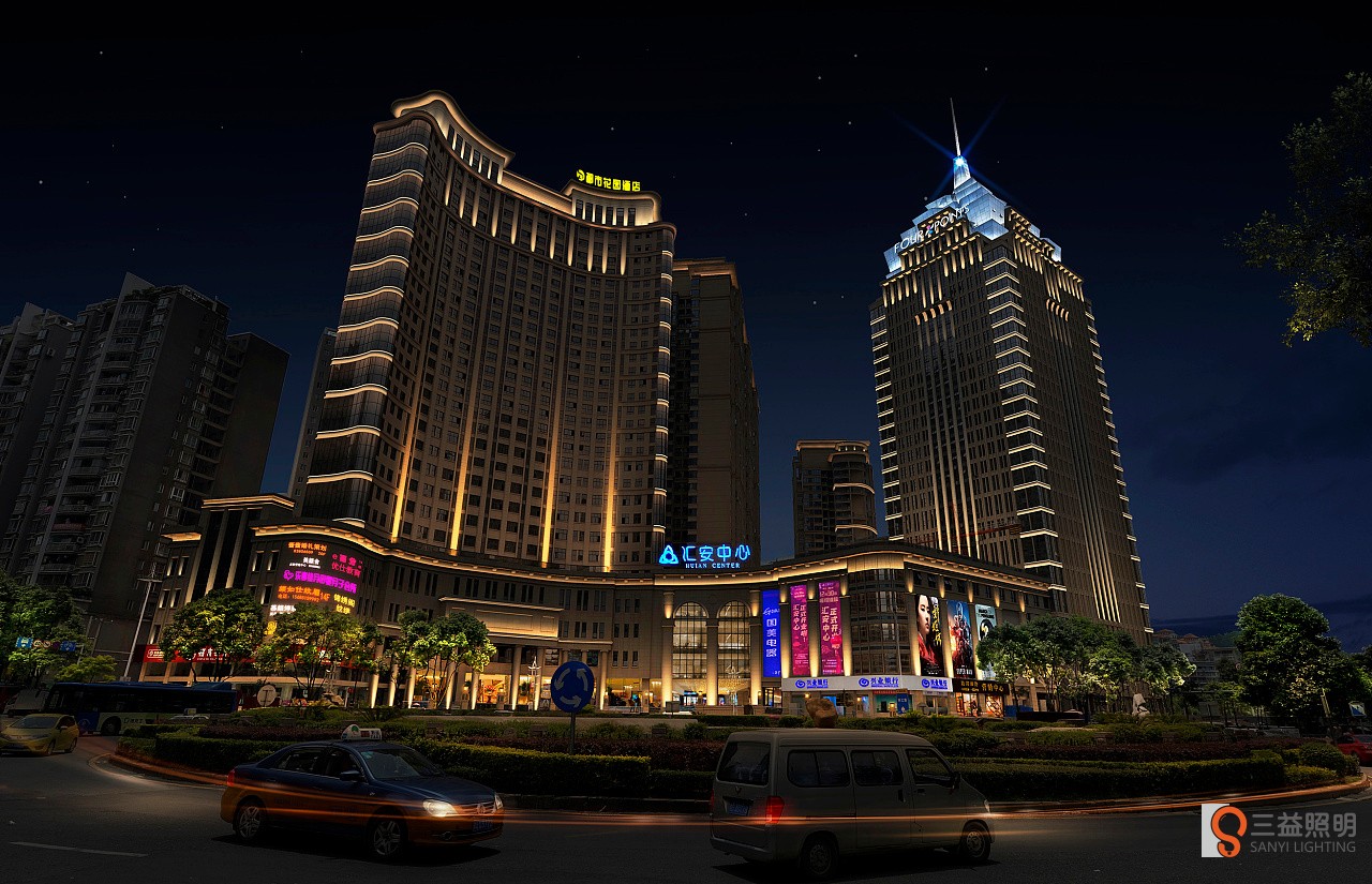 3. 燈光布局:燈光的布局要合理,不能過于擁擠或單調(diào)??梢酝ㄟ^不同的燈光布局方式,如橫向、縱向、聚散等,來突出酒店的外墻線條和建筑特色。同時(shí),要注意燈光的均勻分布,避免產(chǎn)生視覺疲勞和不適感。